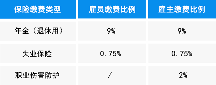 上表仅适用于沙特籍雇员。若雇员为非沙特籍,则仅须由雇主方以雇员收入为基数缴纳2%的工资,用于支付非沙特籍雇员的工伤及非工伤残补偿。